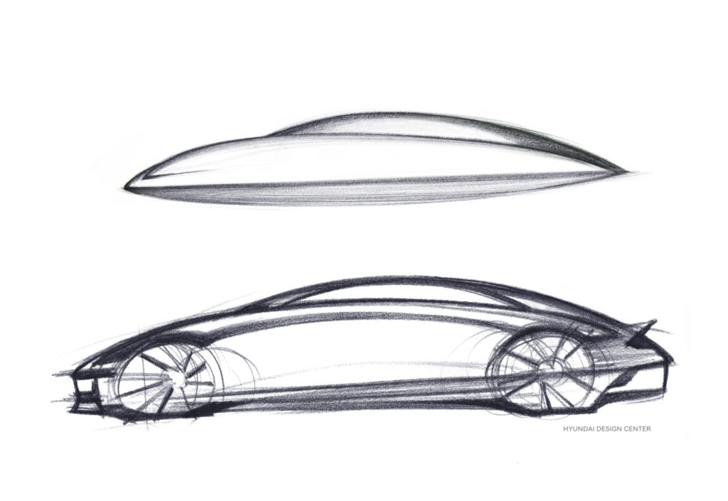 El boceto representa la silueta única y aerodinámica del IONIQ 6, inspirado en el concept EV