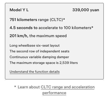 El Model YL cuenta con una autonomía estimada de 751 km bajo el ciclo CLTC, cifra que suele ser más alta que la medida en los estándares WLTP o EPA. A pesar de su mayor tamaño, el alcance es similar al del Model Y Long Range AWD, gracias a la incorporación de un paquete de baterías de mayor capacidad.